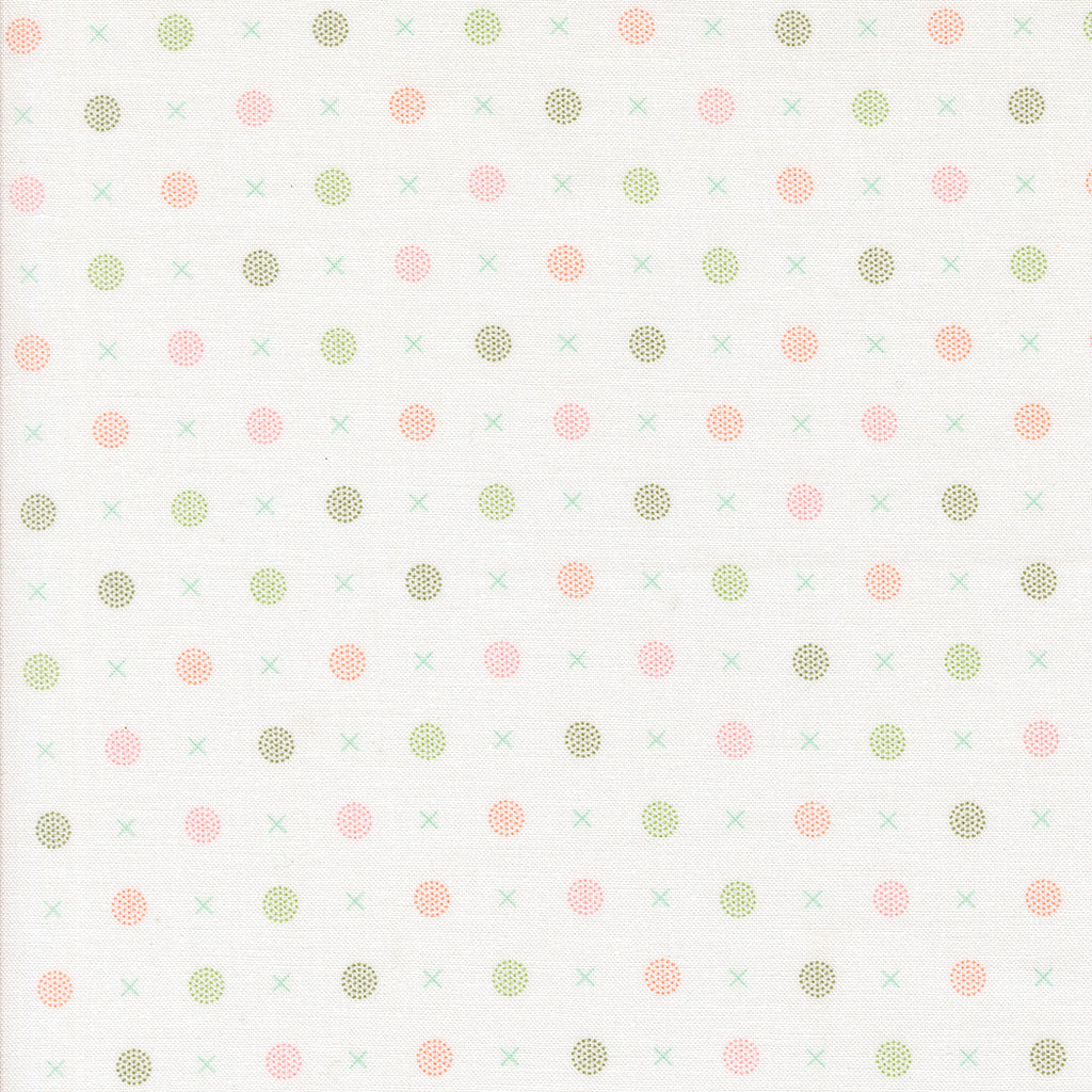 Scattered small X & O print on a white background. This fabric is designed by Corey Yoder for Moda. 100% cotton. 42" wide.