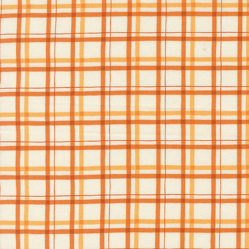 Fun orange plaid on a snow background. Designed by Deb Strain for Moda. 42" wide. 100% cotton.