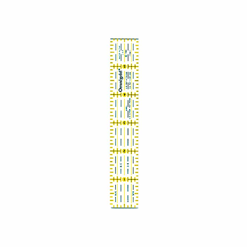 The Omnigrid 1in x 6in ruler is used when sewing and quilting to check seam allowances, trim foundation piecing, and mark hems and seam allowances. Use with a rotary cutter or a straight-edge blade. Edge markings for accurate measuring. Laser cut edges for smooth, deep cutting. Patented double-sight lines that show up on light and dark fabrics. Heavy-duty durable acrylic material. Left- and right-hand use.