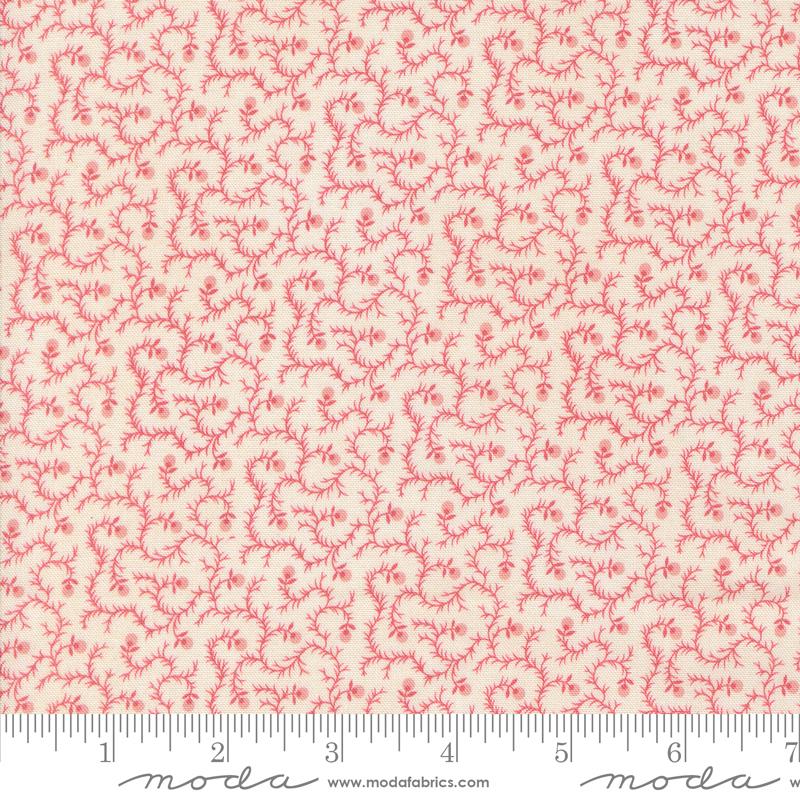 Traditional pink vine print on a snow background. Designed by Betsy Chutchian for Moda. 42" wide. 100% cotton.