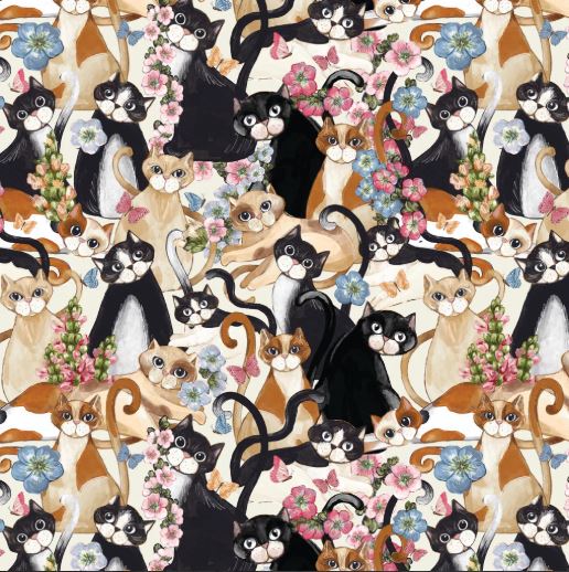 Fun cat collage print. This fabric is from Camelot which is a Canadian owned company. 42" wide and 100% cotton.