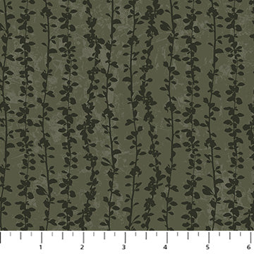 Leafy vine stripe in a dark green colorway. 100% cotton. 42" Wide.