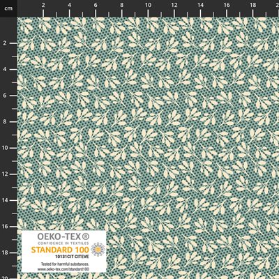 Lovely botanical print in a teal colourway.  42" wide.  100% cotton.