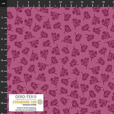 Lovely botanical print in a magenta colourway. 42" wide. 100% cotton.