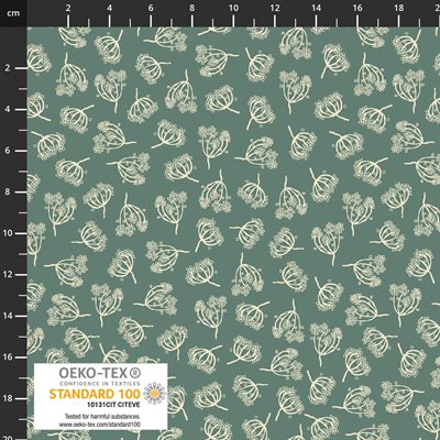 Lovely botanical print in a teal colourway.  42" wide.  100% cotton.