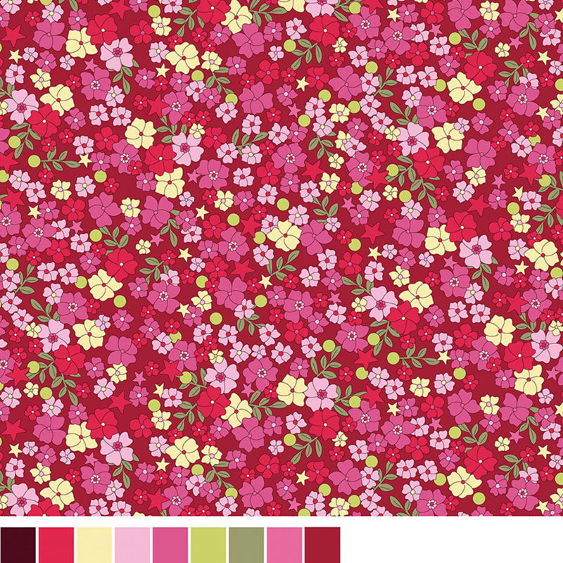 Bright and cheerful floral print in a red colourway.  Benartex.  42" wide.  100% cotton.