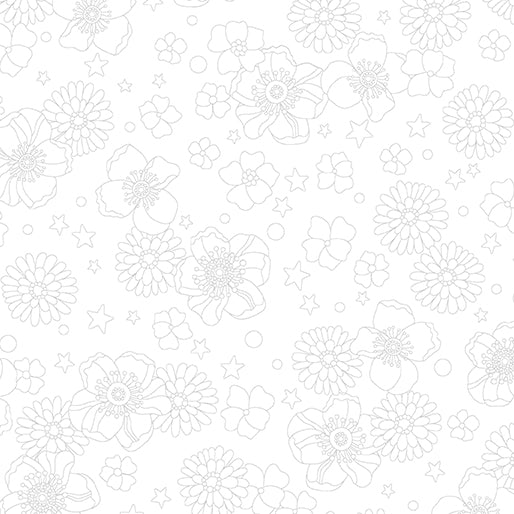 Floral white on white print for Benartex. 42" wide. 100% cotton.