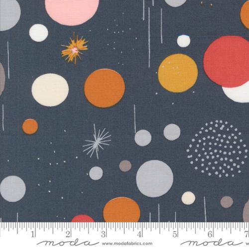 Large dotted print in a modern colourway on a navy background. This fabric is designed by Zen Chic for Moda. 100% cotton. 42" wide.