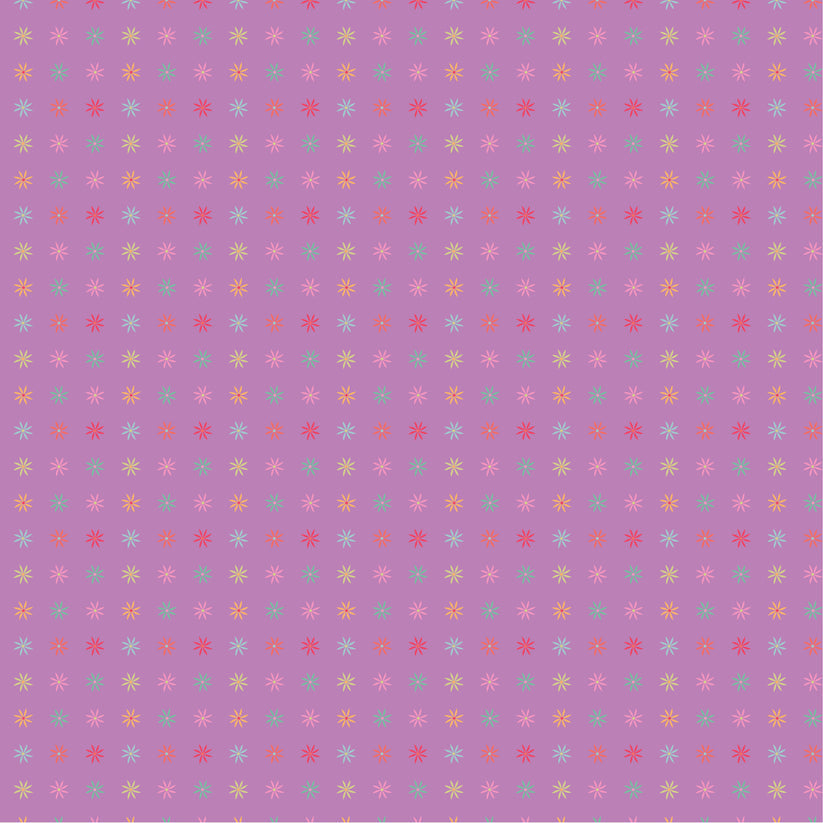 Small geometric floral on a hot pink background. Part of the Calico Cowgirls Collection from Poppie Cotton.  42" wide.  100% cotton.