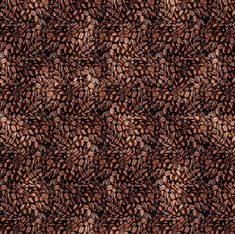 Coffee beans on a black background. 42" wide. 100% cotton.