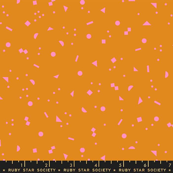 Little gold chips in a rusty orange colourway. Designed by Kimberly Kight for Ruby Star - 42" wide. 100% cotton.